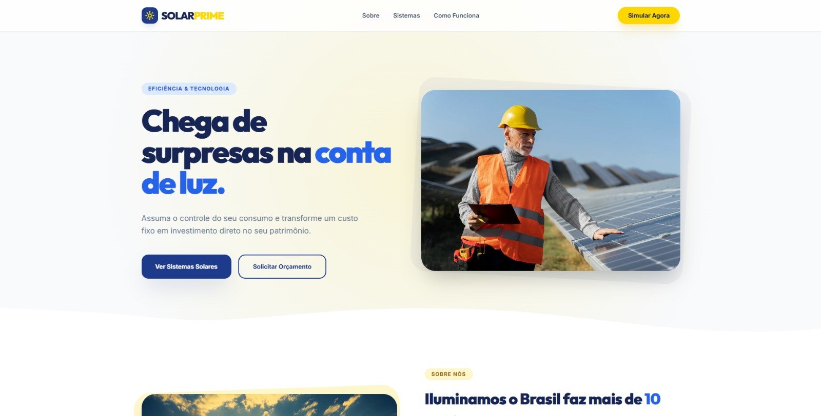Plataforma de alta performance para conversão de leads no setor de energia solar.